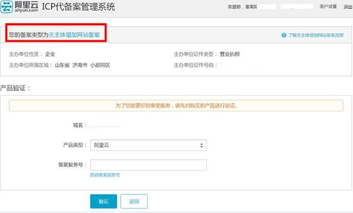 根據您填寫備案域名以及主體(tǐ)信息,進行(xíng)驗證備案類型