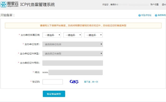 1. 注冊備案系統(aliyun.gein.cn)